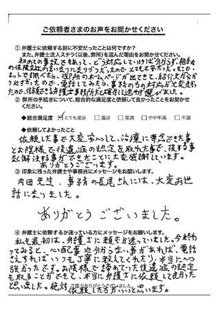 当事務所への依頼で、後遺障害の認定と休業損害まで認められ大きく増額できたケースです。