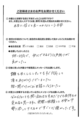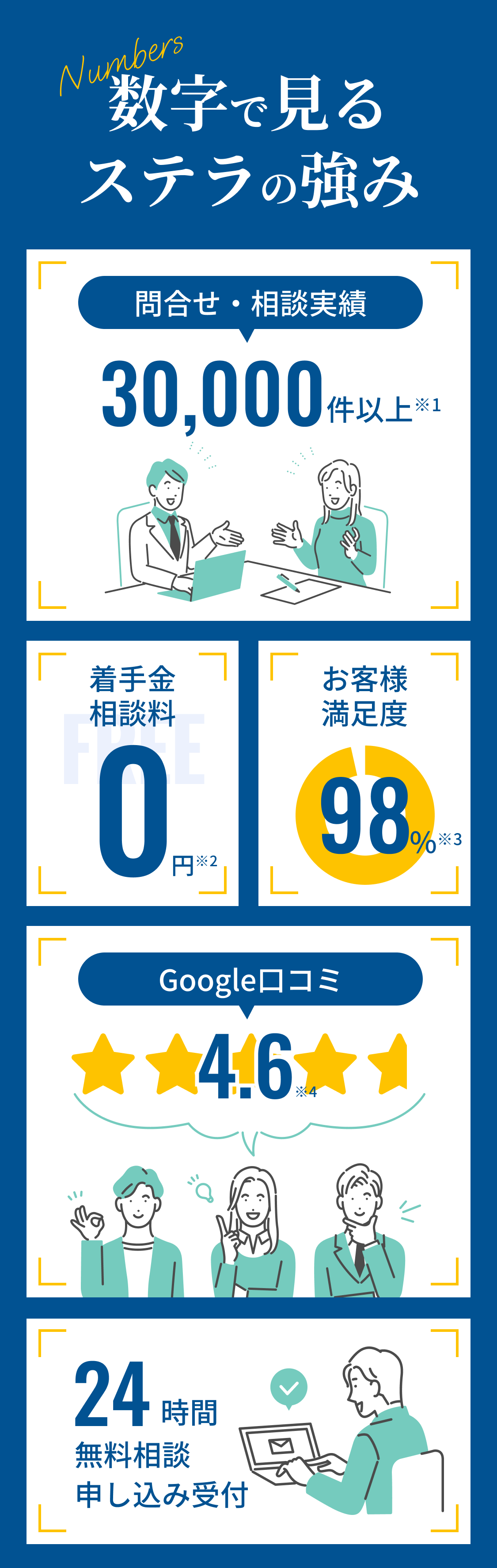 「依頼後に放置された」「冷たく対応された」といった話を聞いて不安になる方もいますが、ステラでは、相談者様に安心してご相談いただけるよう、丁寧な対応を徹底しています。